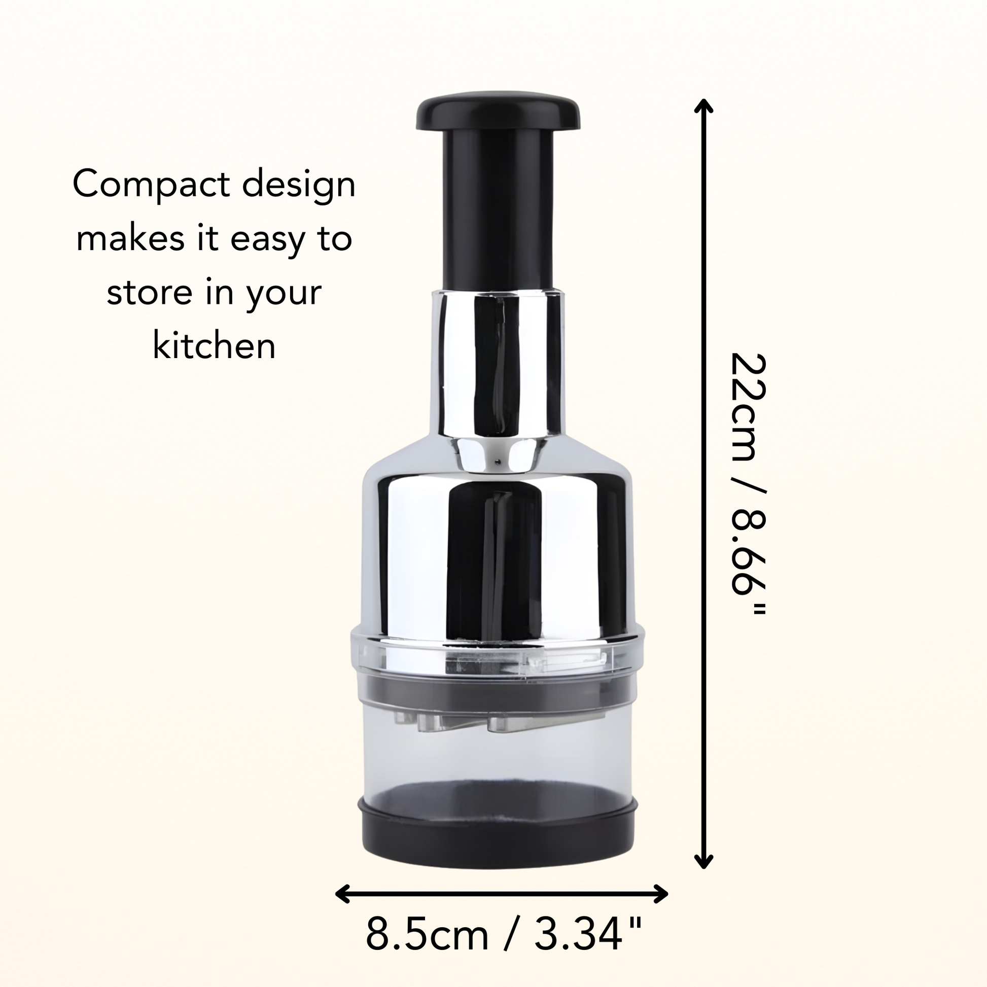 Our Jumbo Food Chopper gives you fast, perfectly uniform cuts with a single press — ideal for onions, garlic, veggies, and fruits.